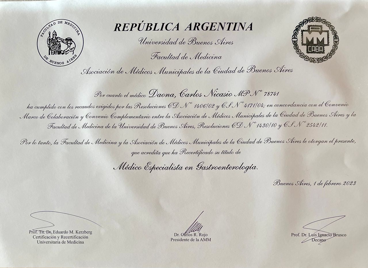 soy docente adscripto de UBA a la unidad docente hospitalaria de hospital santojanni de la ciudad autònoma de buenos aires; donde fui residente de clìnica mèdica, completè el curso trianual de SAGE, curso de endoscopìa digestiva ENDIBA y Ecografìa y ultrasonografìa SAUE-AMA. en continua formación medica a través de cursos, jornadas, simposios, congresos.