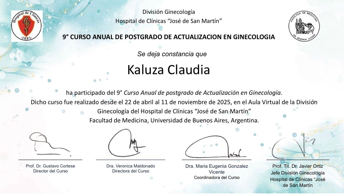 Muchas gracias,Dra. Kaluza Su dedicación y profesionalismo son una inspiración".