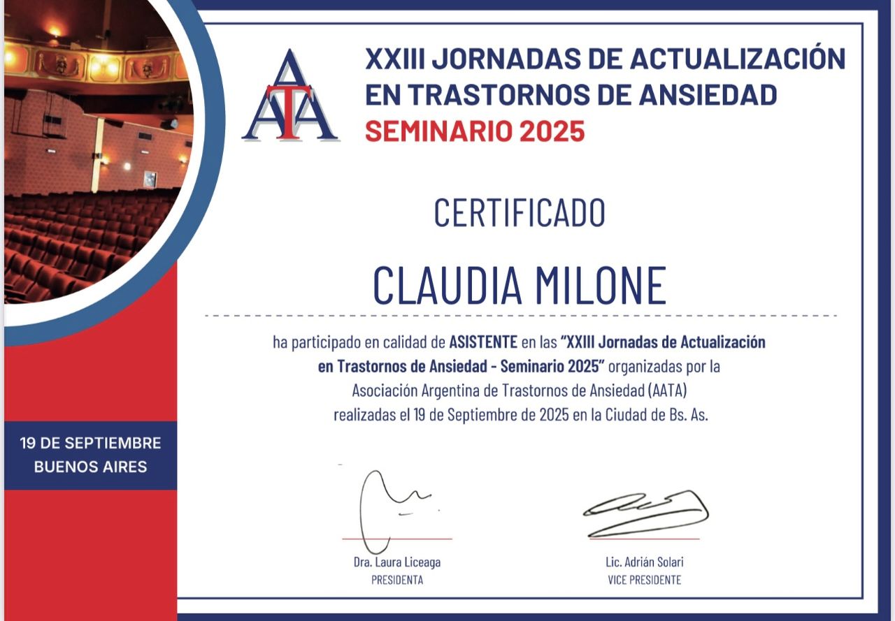 Integrante del Directorio de Profesionales de la web de la Asociación Argentina de Trastornos de Ansiedad.(AATA)