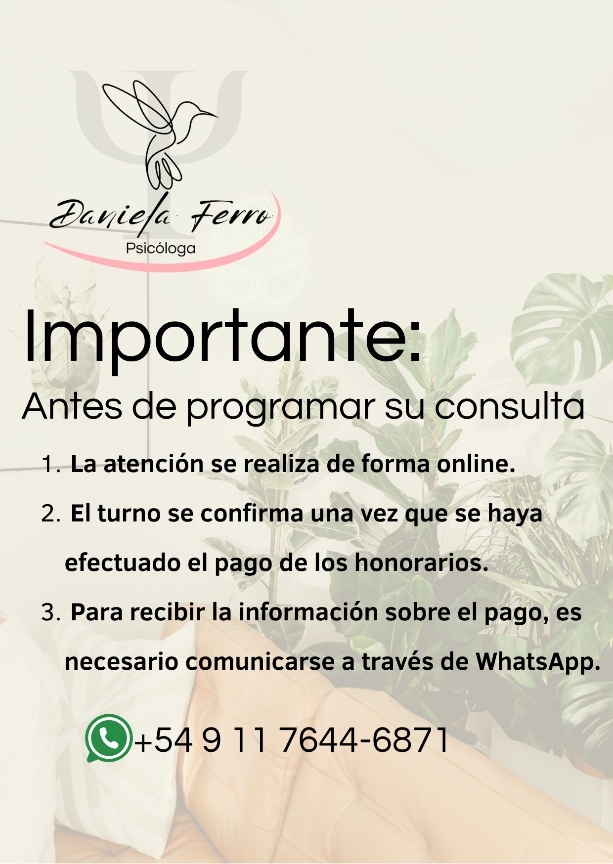Indicaciones claras y profesionales.• Daniela Ferro • Consulta psicológica •