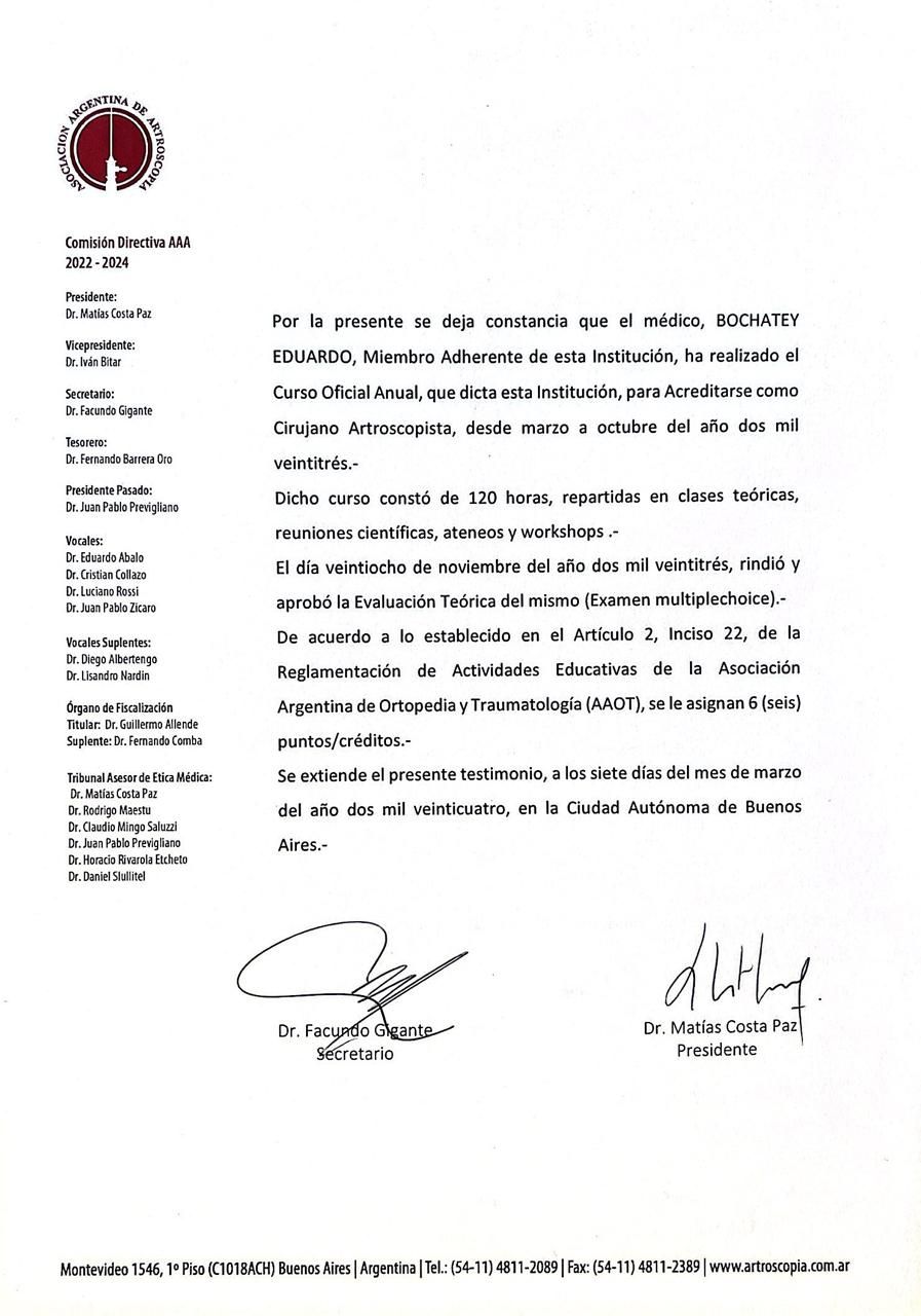 Miembro Titular de la Asociación Argentina de Ortopedia y Traumatología (A.A.O.T.)
