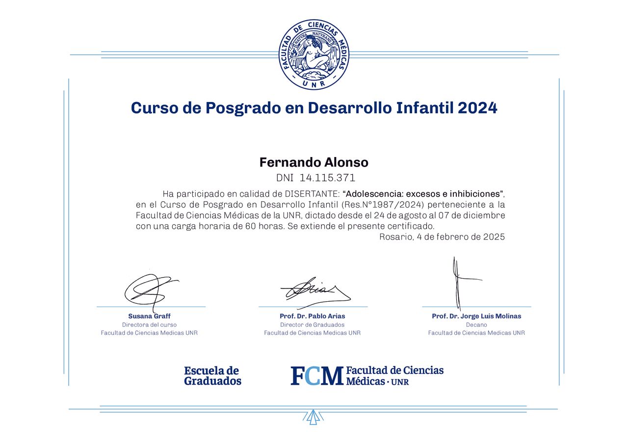 Director de "Ateneos de Actualización en Psiquiatría Infanto Juvenil" del Hospital Provincial de Rosario