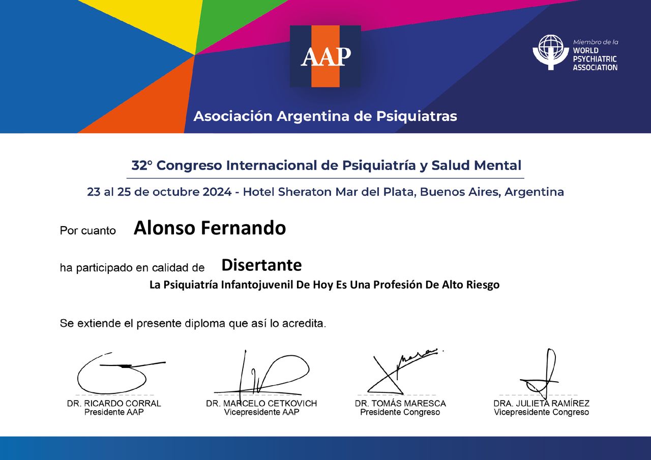 Especialista en Psiquiatría y Psicología Pediátrica del Colegio de Médicos de Buenos Aires