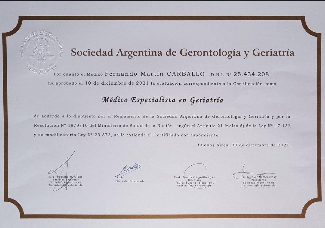 Medico- UBA- especialista en Clinica y Geriatria, director medico.