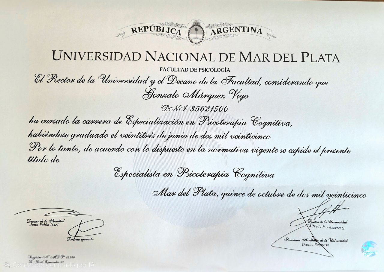 Llegué a la primer consulta con el Dr. Gonzalo en un momento bastante complejo de mi vida, y desde la primera sesión sentí una mezcla de claridad, contención y profesionalismo que nunca había experime...