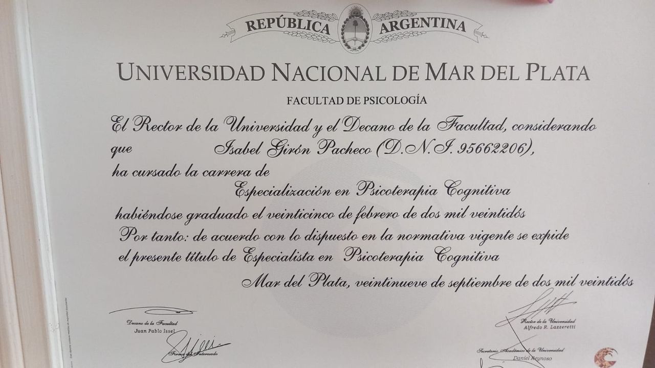 Agradezco mucho tus palabras, Lore. Mi prioridad es intentar ofrecer un acompañamiento basado en la escucha activa y la claridad metodológica, para que cada paso del proceso tenga un sentido real para ti. Es un gusto acompañarte en este camino hacia tu bienestar." "Un abrazo"