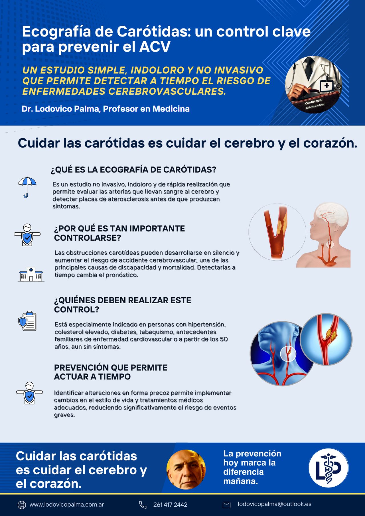 Eco Doppler de carótidas. Prevenir también es cuidar el cerebro.