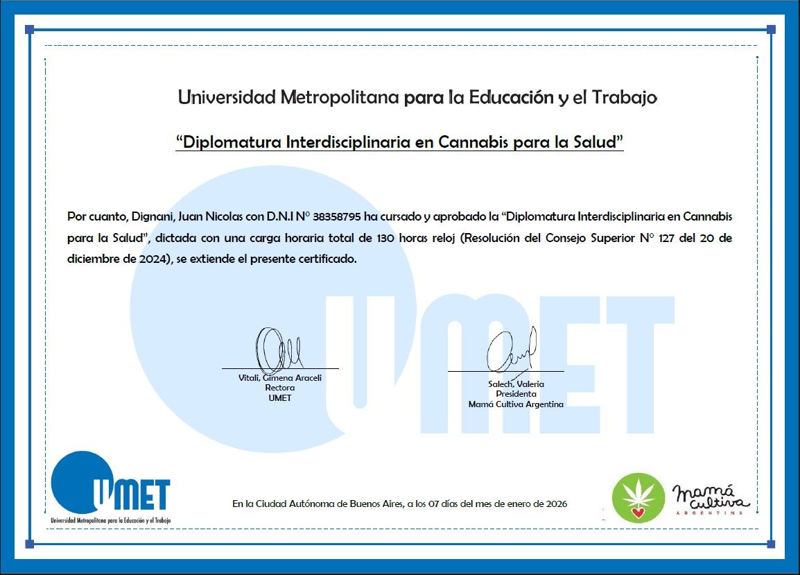 Soy médico residente de Psiquiatría en el Hospital General de Agudos Teodoro Álvarez (CABA), con formación en el abordaje integral de la salud mental. Me especializo en el uso terapéutico de cannabis medicinal y cuento con formación específica en Mamá Cultiva, desde donde adquirí herramientas clínicas y conocimientos actualizados en esta área.
