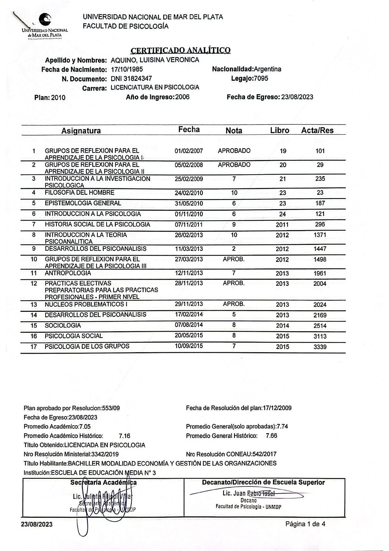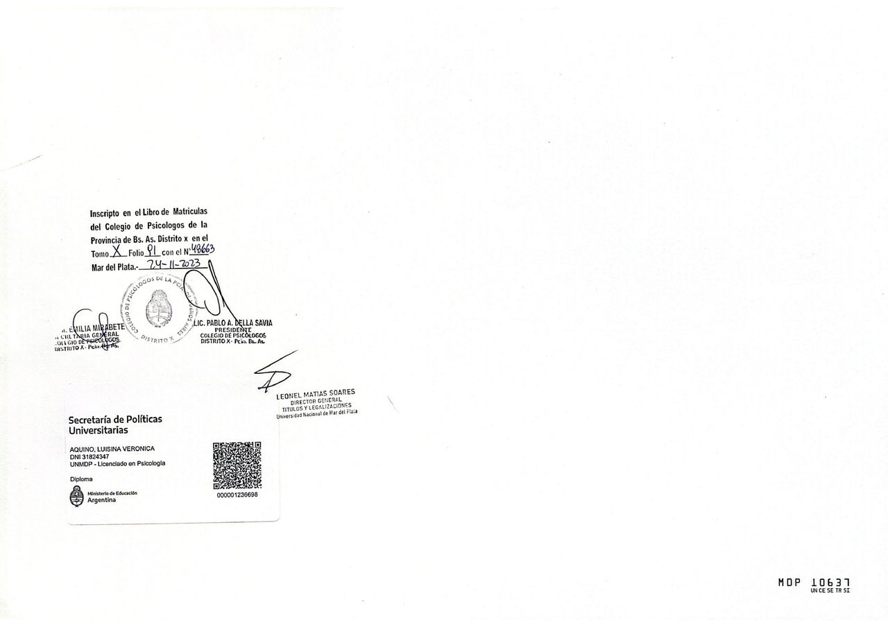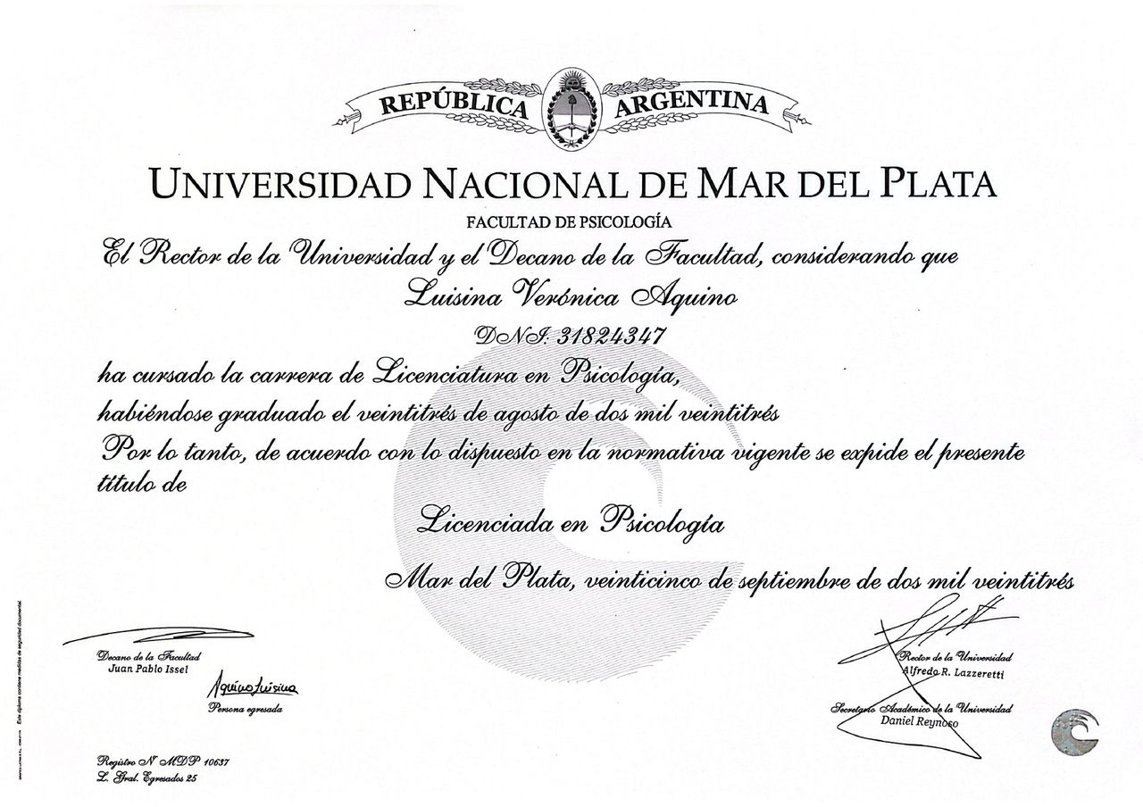 Soy Luisina, licenciada en Psicología egresada de la Universidad Nacional de Mar del Plata. Cursé mi residencia clínica de pregrado en el Hospital Interzonal General de Agudos (HIGA), donde me formé con 200 horas de práctica. Allí tuve un acercamiento a la psicopatología, los contextos de urgencia y la complejidad clínica. Esa experiencia fue decisiva para confirmar mi vocación y orientar mi práctica.