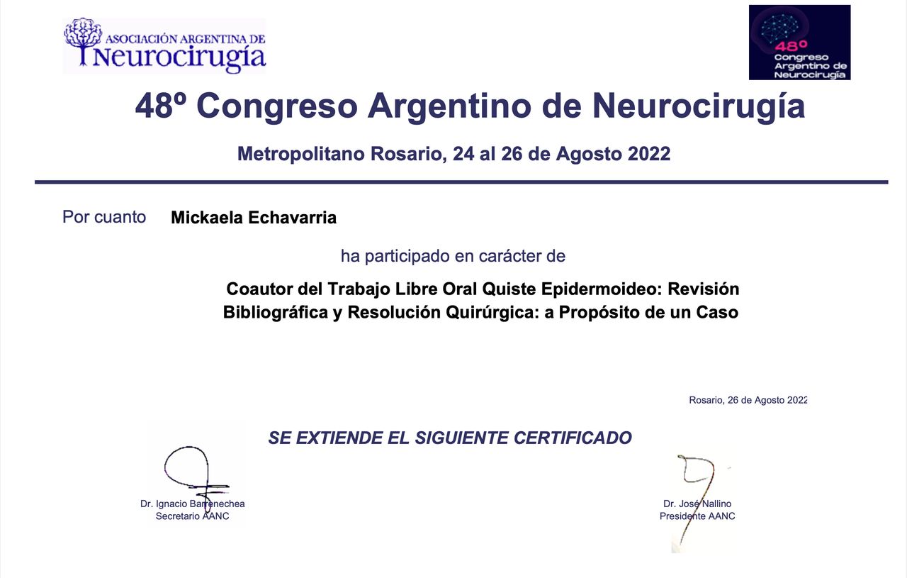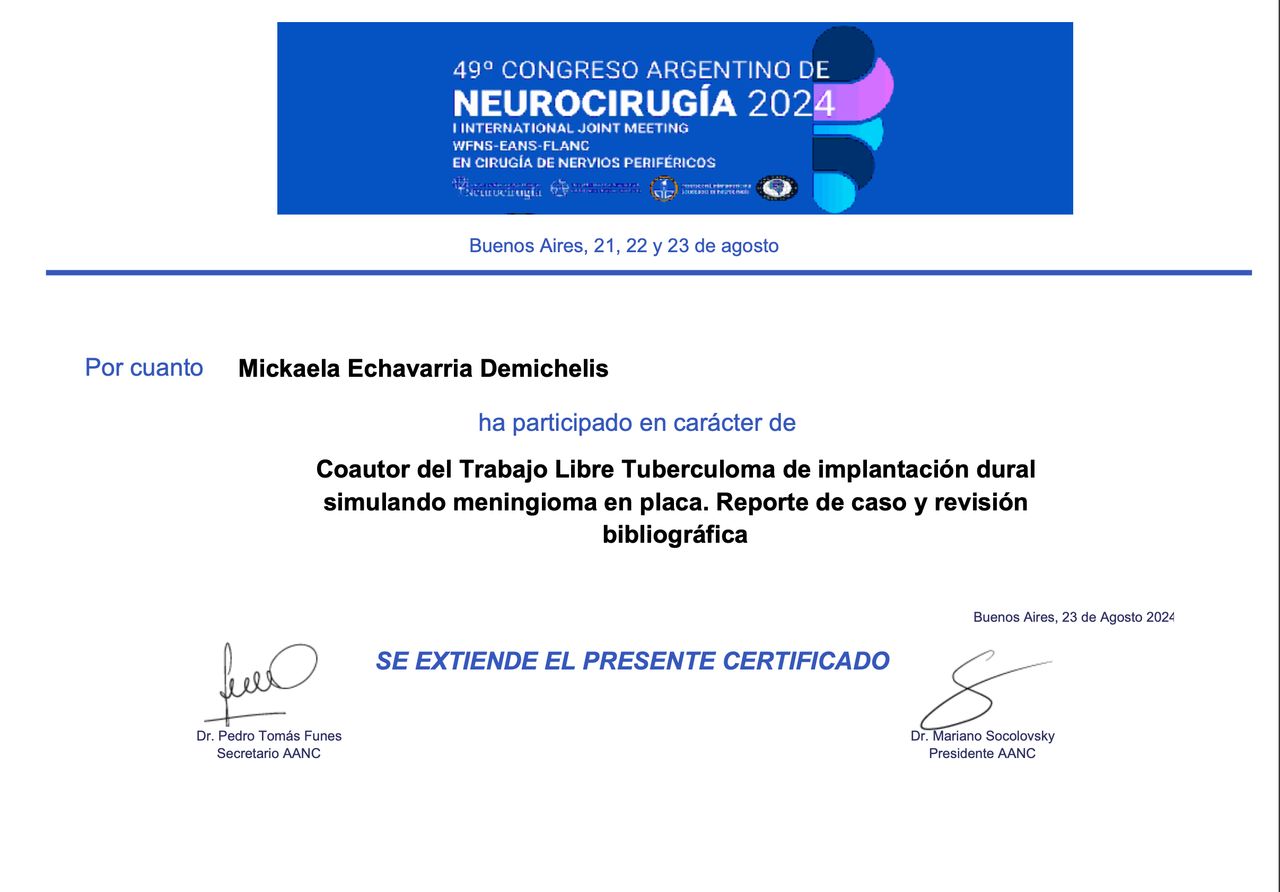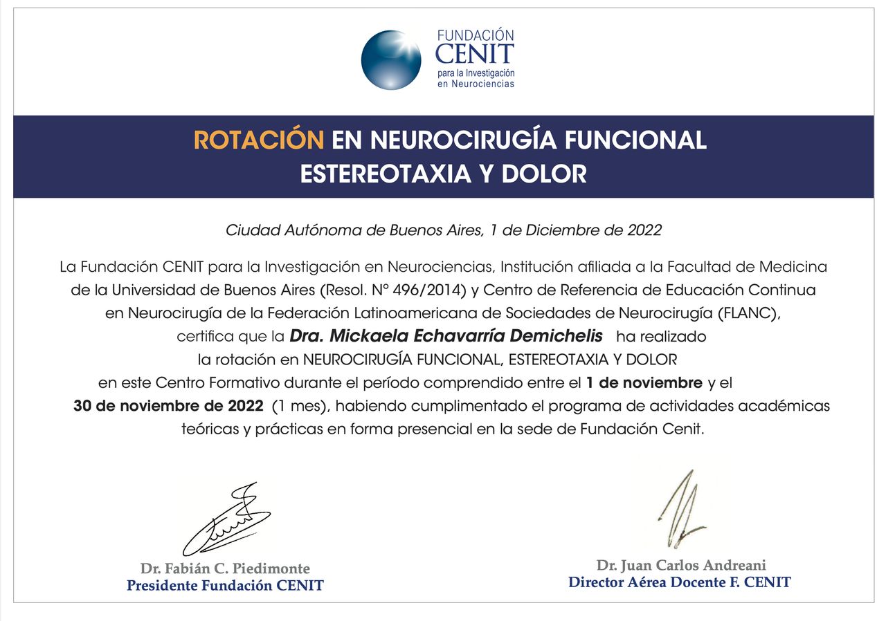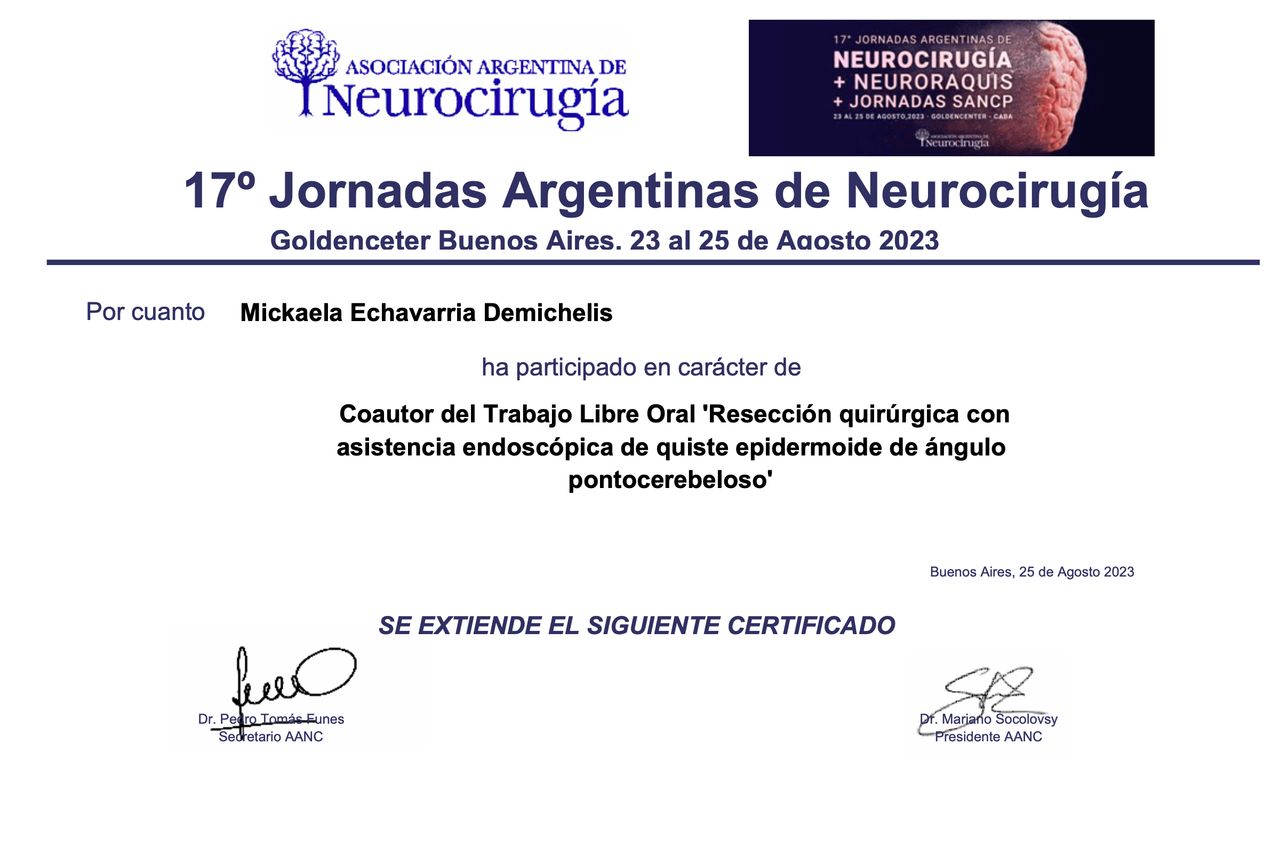 Soy miembro de la Asociación Argentina de Neurocirugía y de la Sociedad Neurológica Argentina, organizaciones que promueven el aprendizaje, la investigación y la colaboración en neurociencias. Mi objetivo es brindar una atención cercana, de alta calidad y basada en la mejor evidencia científica, acompañando a cada persona con respeto y dedicación en cada paso del tratamiento.