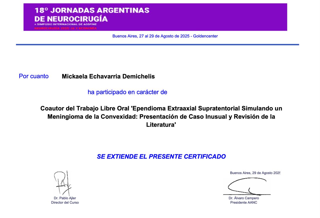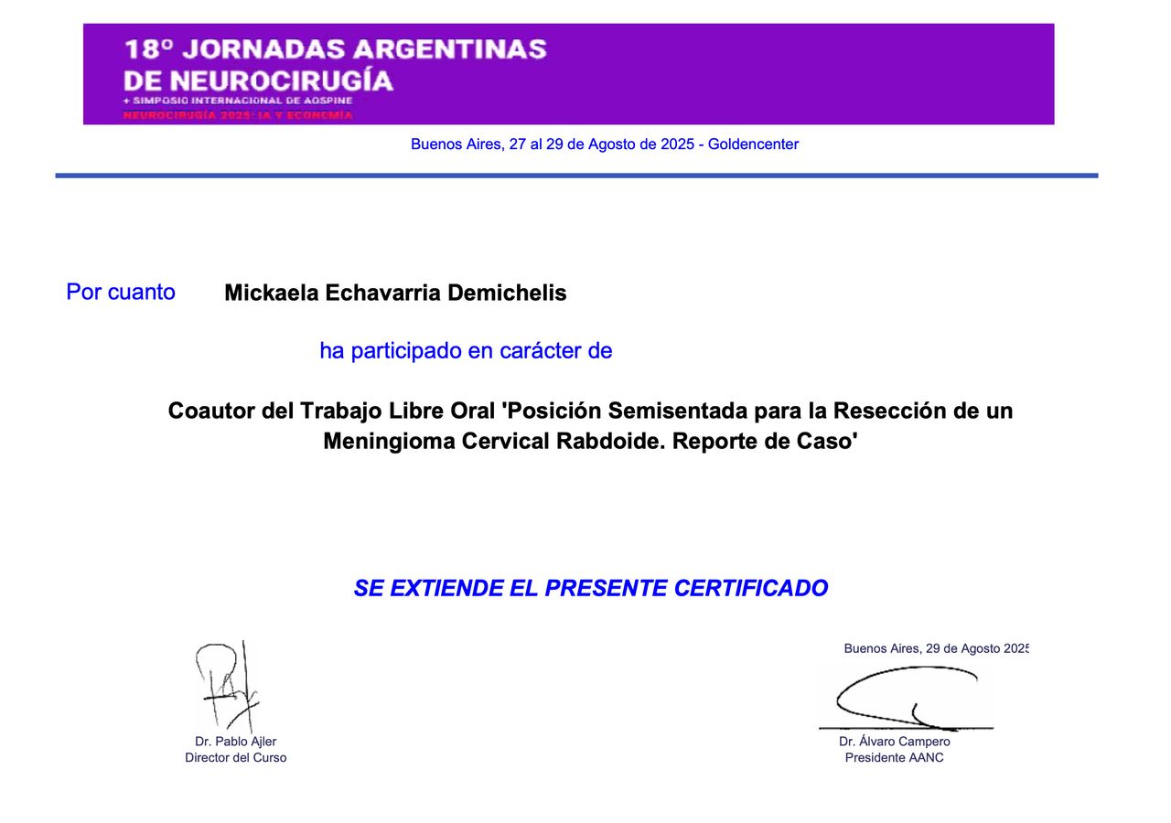 Soy miembro del Equipo Neuroquirúrgico Campero & Baldoncini, un grupo de referencia en neurocirugía que se caracteriza por el trabajo interdisciplinario, la excelencia técnica y el abordaje integral del paciente.