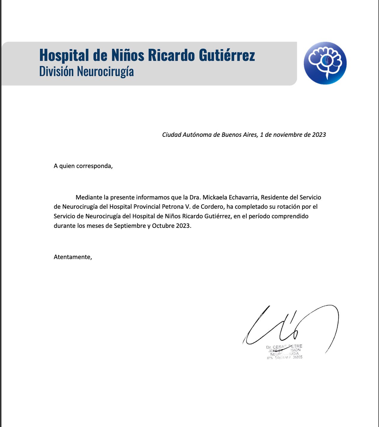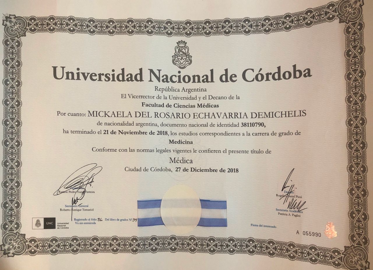 Me gradué como médica en la Universidad Nacional de Córdoba y realicé mi residencia en Neurocirugía en el Hospital Petrona V. de Cordero, en San Fernando, donde tuve el privilegio de ejercer la Jefatura de Residentes.