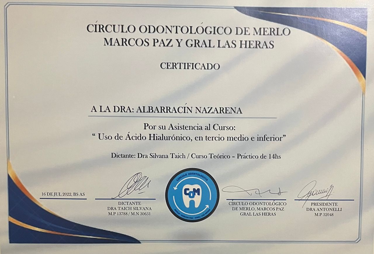 2 opinionesHola, soy la Dra. Nazarena, recibida en la Universidad de Buenos Aires. Realizo tratamientos odontológicos como arreglos de caries, limpiezas de sarro, alineadores invisibles, blanqueamientos dentales, extracciones y algunos casos de tratamientos de conducto. Además realizo aplicación de toxina botulínica (botox) con fines terapéuticos para tratar el bruxismo severo y con fines estéticos, para suavizar arrugas de expresión en el rostro. También trabajo con plasma rico en plaquetas (PRP), un tratamiento regenerativo que mejora la calidad y firmeza de la piel de manera natural. Te espero en el consultorio para que podamos conocernos. Podés agendar tu cita directamente desde esta plataforma. ¡Será un placer atenderte!