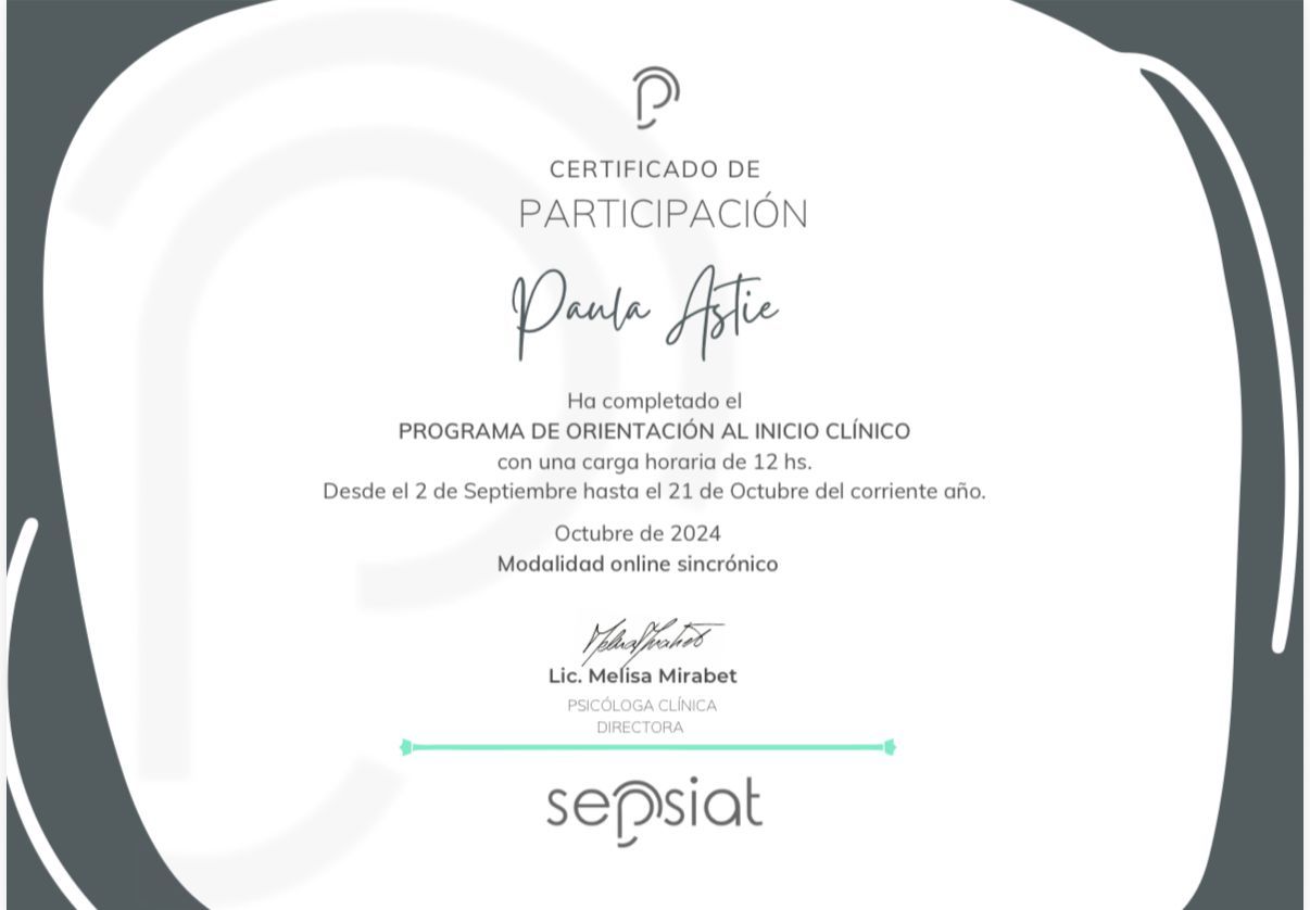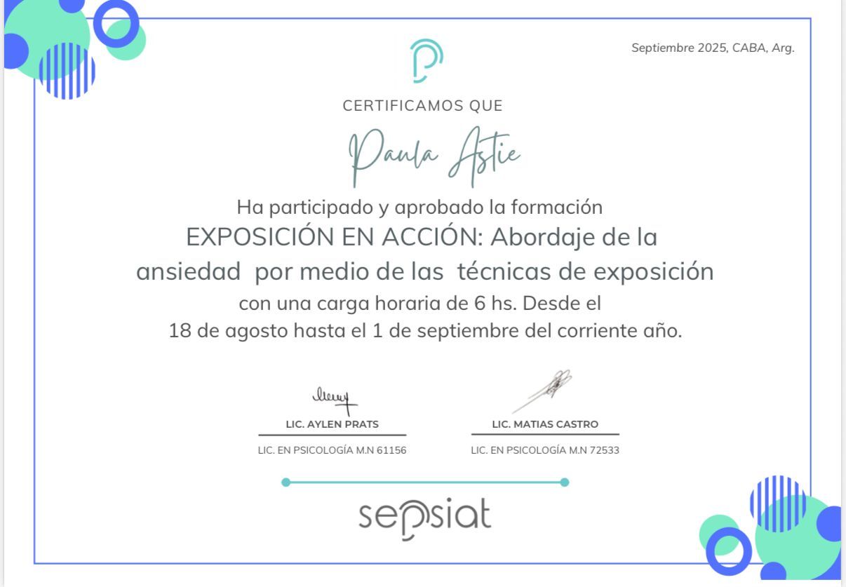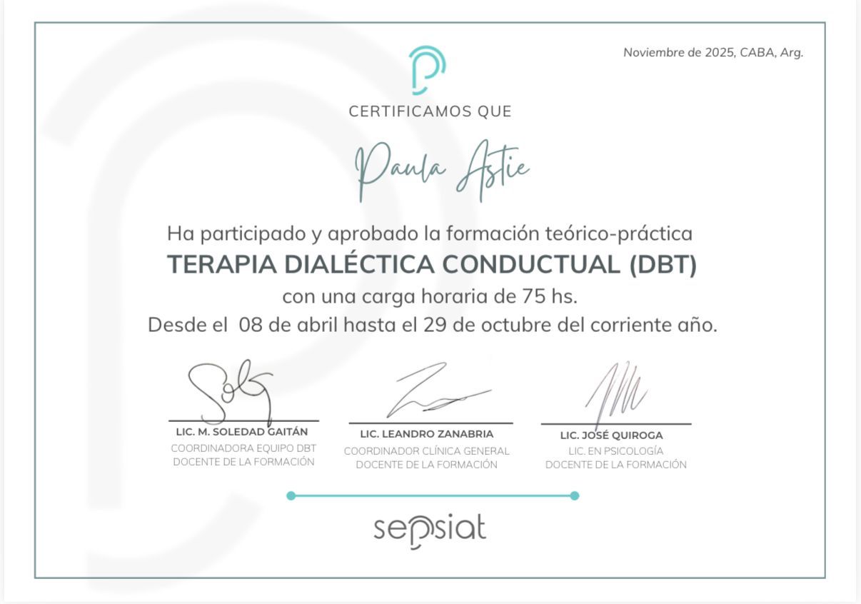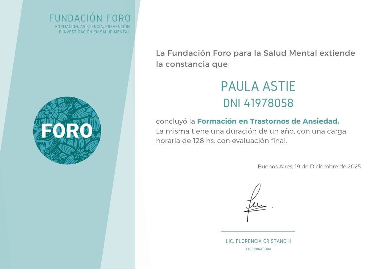 Hola! Soy Paula Astie, Licenciada en Psicología, graduada en la Universidad de Belgrano.