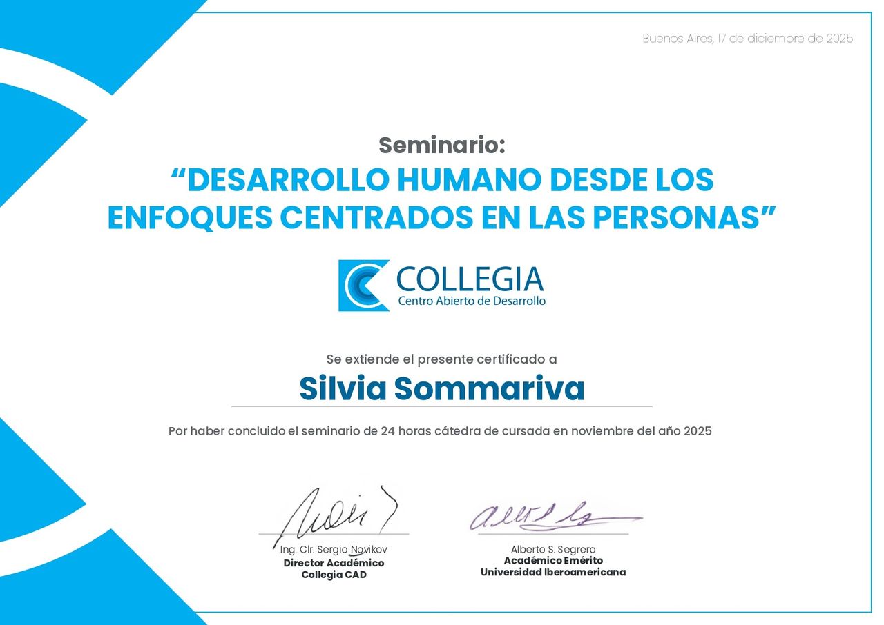 Soy Counselor y Psicóloga con amplia experiencia clínica, formada en psicología sistémica y psicología humanista, con un enfoque centrado en el aquí y ahora, el vínculo y la resolución consciente de los conflictos.