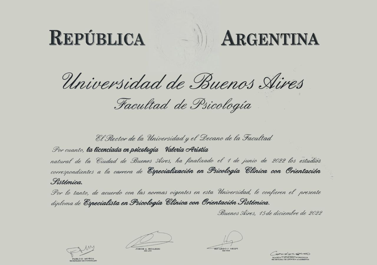 Contacté a Valeria en un momento muy complicado de mi vida. Me entendió, me ayudó pero lo más importante es que me sentí escuchada por primera vez. Me dio full soporte y acompañamiento despues de la sesión. Estoy muy feliz de poder atenderme con ella.