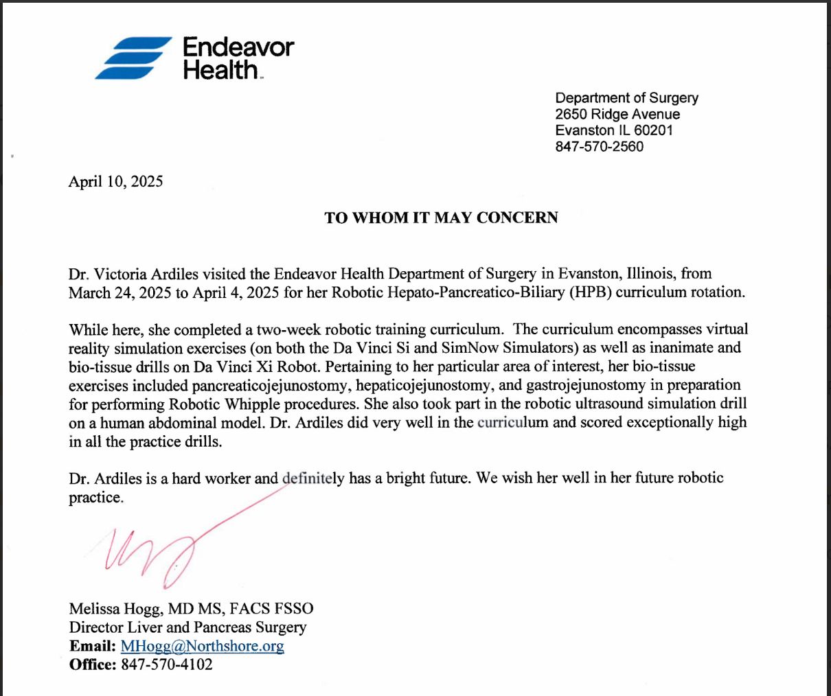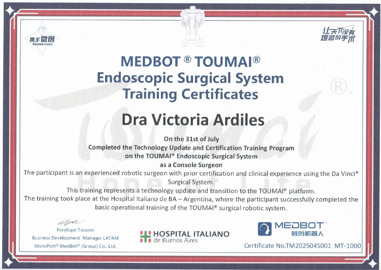 Complementé mi formación con estudios de posgrado en investigación clínica, gestión en salud y cirugía robótica, y realicé entrenamientos en hospitales de referencia en Estados Unidos y Europa.